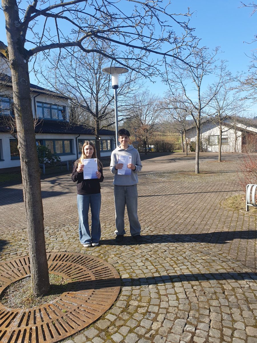 Melissa Malke, Siegerin im Bereich der Realschule, Sergej Latas, Sieger im Bereich der Hauptschule.